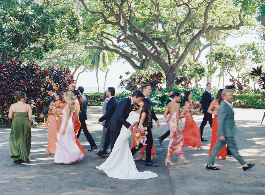 • It creates a relaxed wedding experience. In a place like Hawaii, where the sun sets quickly, seeing each other before the ceremony allows us to complete family and wedding party portraits beforehand, when everyone is fresh and relaxed. That way, you and your loved ones can head straight into cocktail hour after the ceremony and fully enjoy the celebration, which often leads to the most natural and joyful candids.